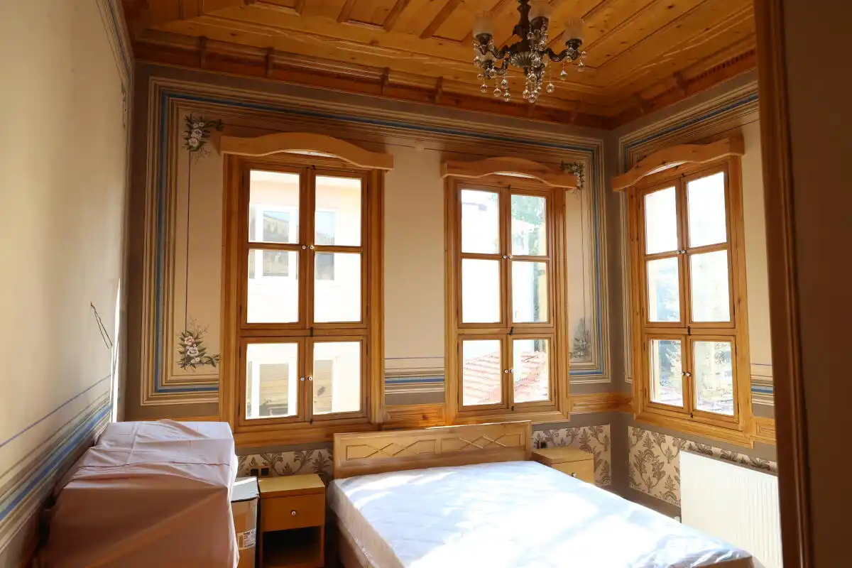 Titiz çalışma sonucu 10 odalı birinci sınıf butik otele dönüştürülen konak, gelecek aydan itibaren hizmete alınacak.